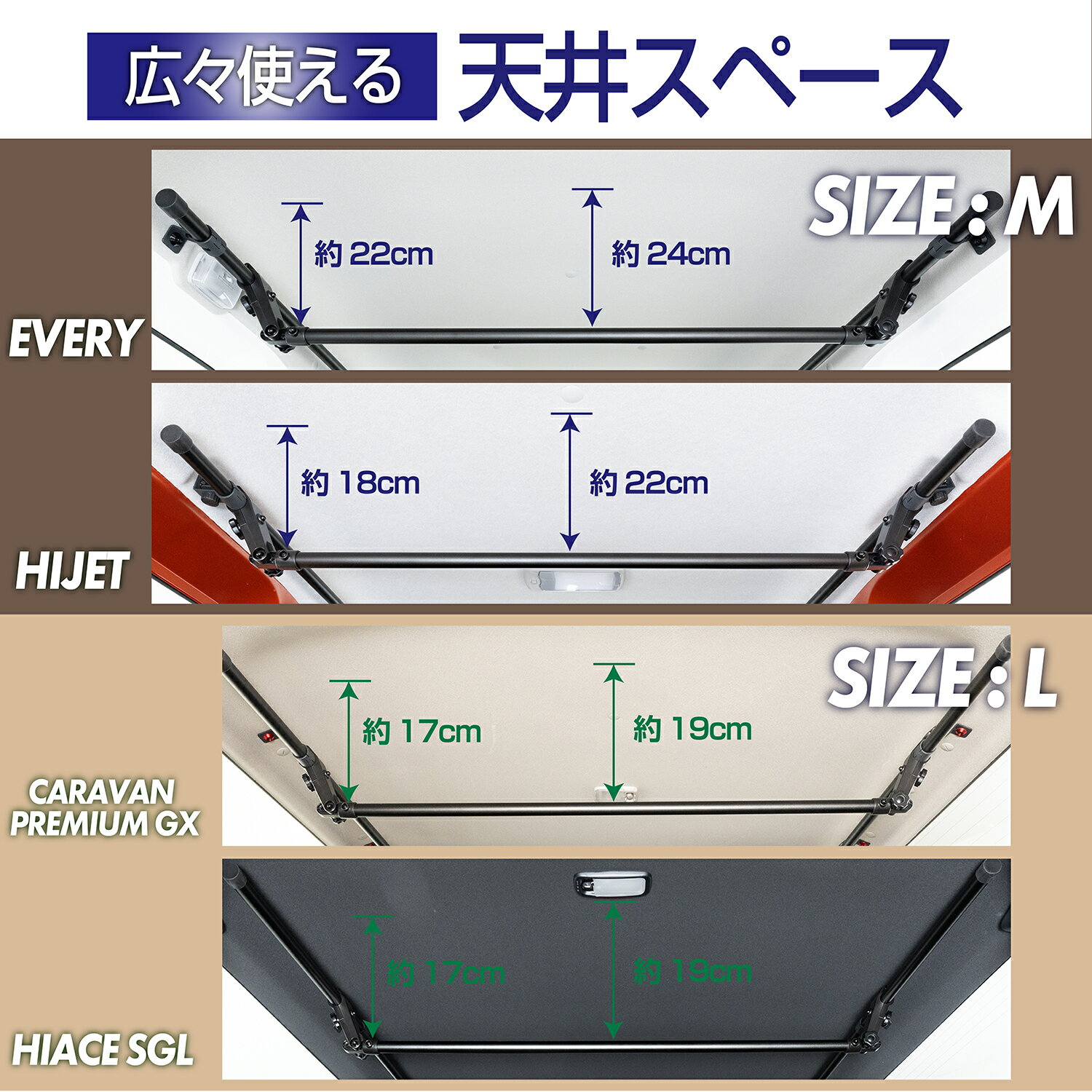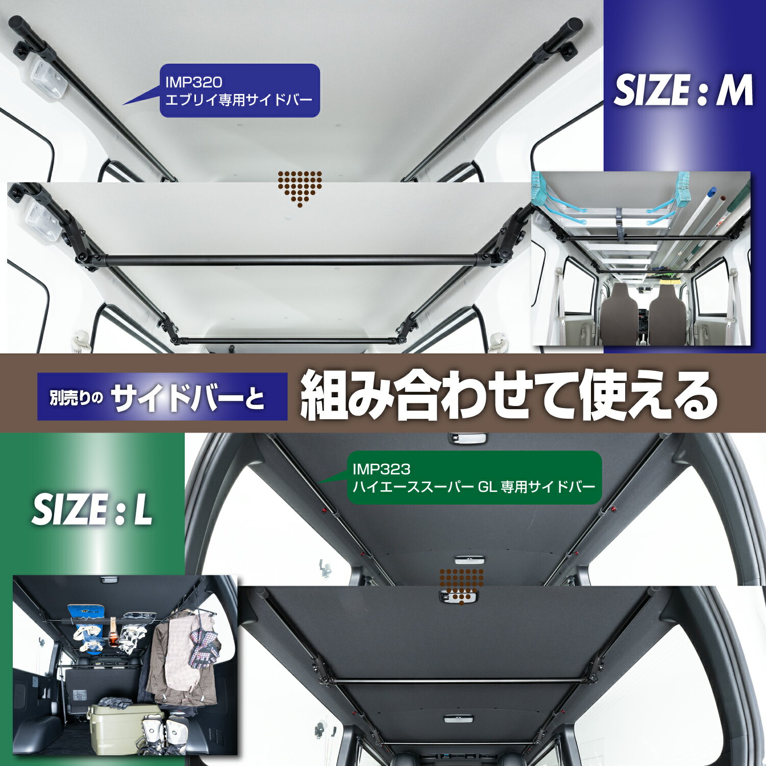 ハンガーバー Mサイズ 106〜109cm / Lサイズ 119〜122cm 2本セット IMP325-326 車内キャリアバー 車内収納 天井収納 車中泊 レジャー 釣りサーフィン スノーボード ロッドホルダー セイワ 【BURNOX by SEIWA】 別売のサイドバーと組み合わせて使用するハンガーバーM / Lサイズ、2本セット。 【適合サイドバー】----------------------------------------------------------------------------------------〈Mサイズ IMP325〉・IMP320 エブリイ専用サイドバー・IMP321 ハイゼット専用サイドバーサイドバー間の幅が106cm~109cmのお車に取り付け可能----------------------------------------------------------------------------------------〈Lサイズ IMP326〉・IMP323 ハイエース専用サイドバー・IMP324 キャラバン専用サイドバーサイドバー間の幅が119~122cmのお車に取り付け可能----------------------------------------------------------------------------------------●無骨な艶消しブラストブラック仕様です。●本製品の1本あたりの耐荷重は約5kgです。●【天井収納】釣竿 サーフボード スノーボード 折り畳みはしご ハンガー などが車内にしっかり積載可能な便利なハンガーバーです。●アウトドア、車中泊、レジャー、釣り、サーフィン、スノーボードに最適。『BURNOX(バーノクス)』は、カー用品メーカー セイワ が展開する、アウトドア・キャリア・エクステリアに特化したブランドです。 ジムニーやハイエースなどの車種専用カーギアで、車中泊やワークシーンなどあらゆるシーンを快適かつ実用的にサポートします。 信頼のSEIWA品質で、あなたのクルマライフをさらに自由で快適に。 5