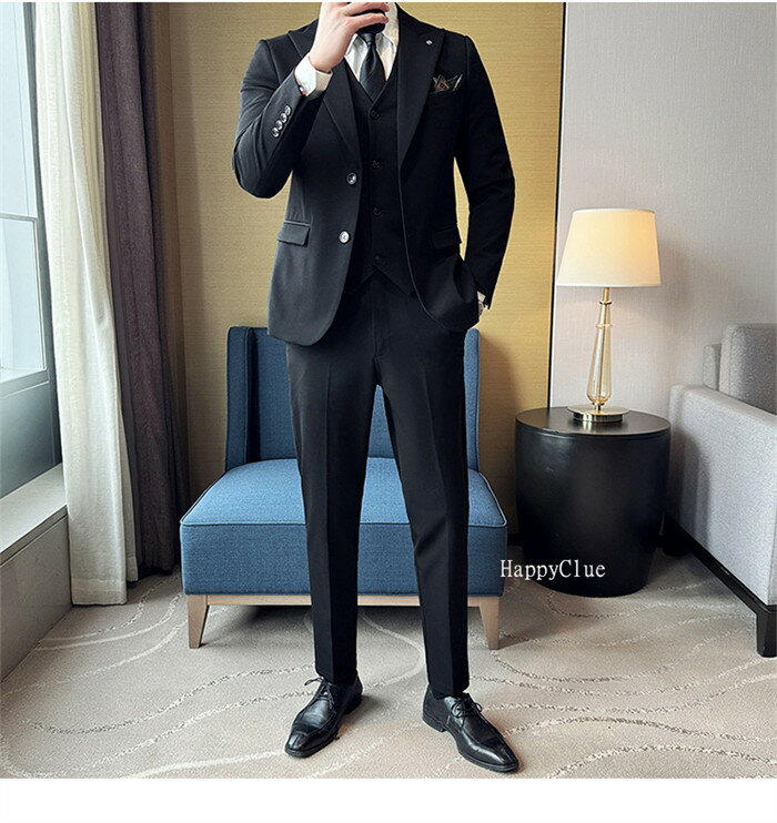 スリーピース メンズスーツ ビジネススーツ タキシード 紳士服 礼服 発表会 スリムスーツ 前撮り フォーマル 黒 冠婚葬祭 キャリア リクルートスーツ 通勤 オフィス 面接 就職活動 3ピーススーツ パンツスーツ 披露宴 結婚式 二次会 同窓会 大きいサイズ 無地 黒 紺色 グレー
