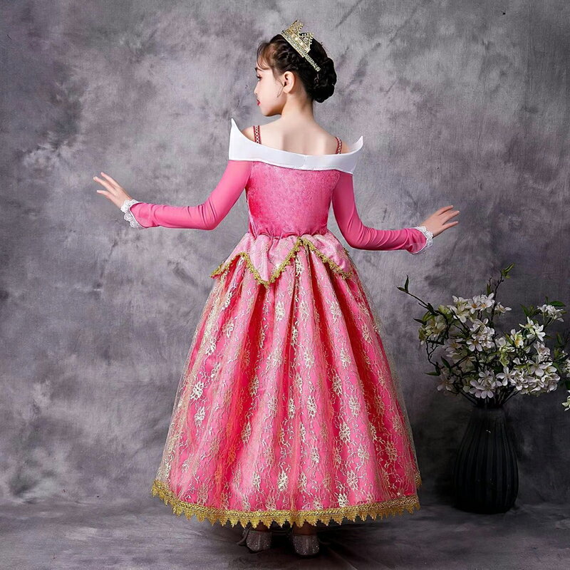 【送料無料】アーロ風 ドレス エルサ風 アリエル お姫様 プリンセス ワンピース ハロウィン 仮装 子ども服 オーロラ姫 風 ロング 子供服 衣装 ピンク コスプレ 誕生日 プレゼント パーティー クリスマス Halloween 舞台 7点セット付 100~140cm 4歳 5歳 6歳