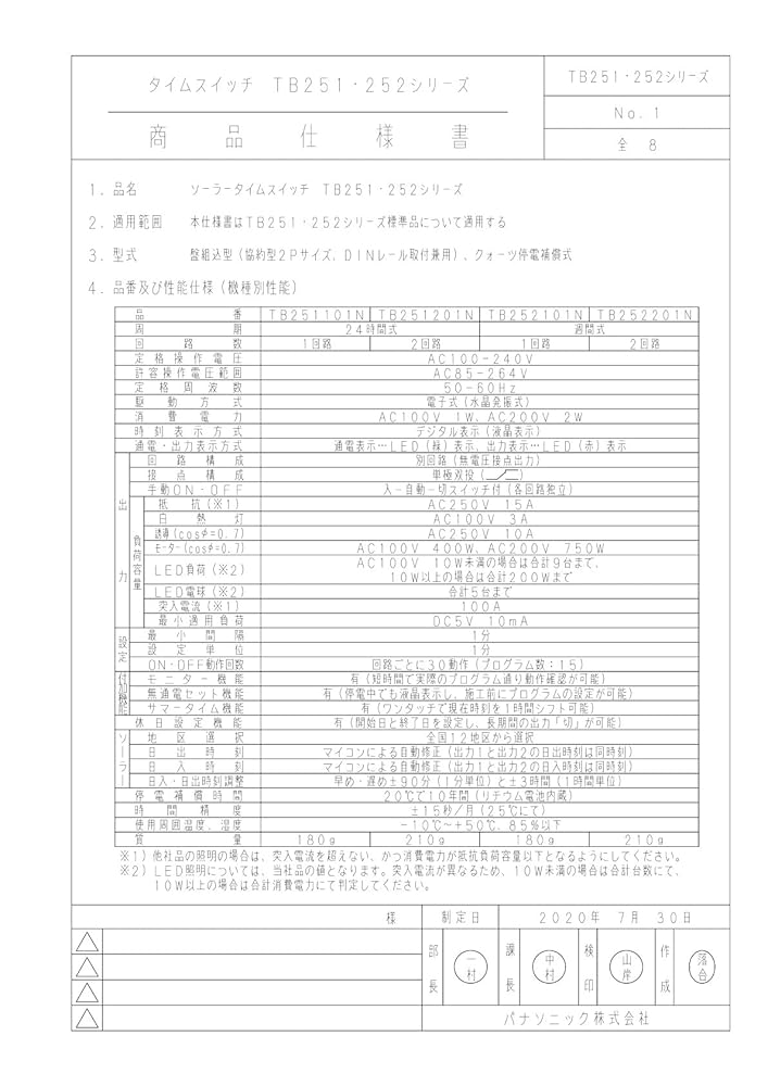 パナソニック(Panasonic) 協約型ソーラータイムスイッチ 24時間式・2回路型 TB251201N