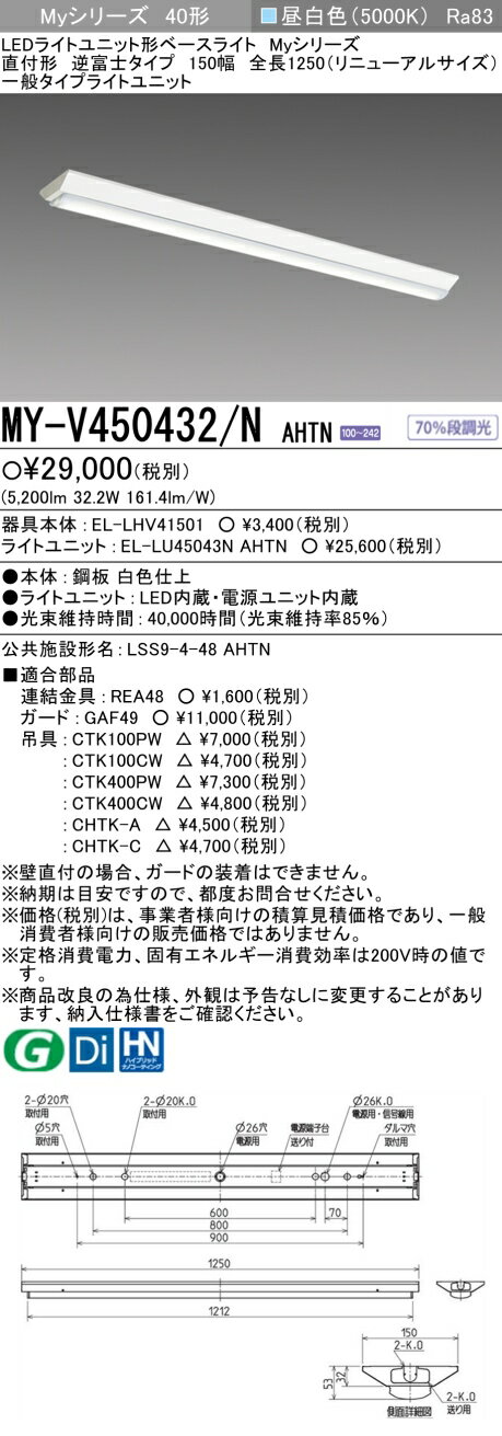 MY-V450432/NAHTN【在庫有、平日13:00までの注文で当日発送、お届けは平日のみ】 直付形 150幅 三菱電機 LED照明器具 LEDライトユニット形ベースライト(Myシリーズ)