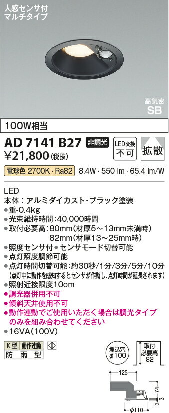 AD7141B27 高気密SBダウンライト 【メーカー直送】 KOIZUMIあかり専科25