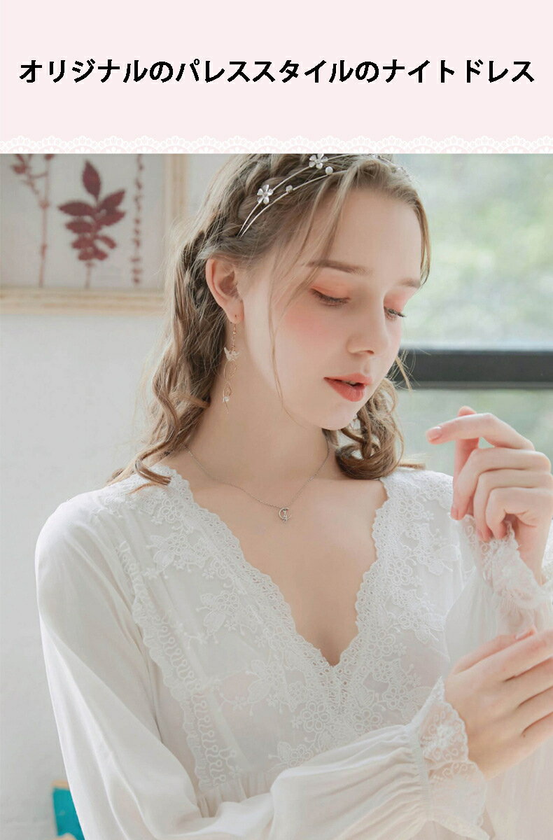 レディースナイトドレスビクトリア朝のナイトドレスメッシュ長袖ナイトドレス プリンセス レトロパレススタイル パレススタイル パジャマルーズホームウェアシルク