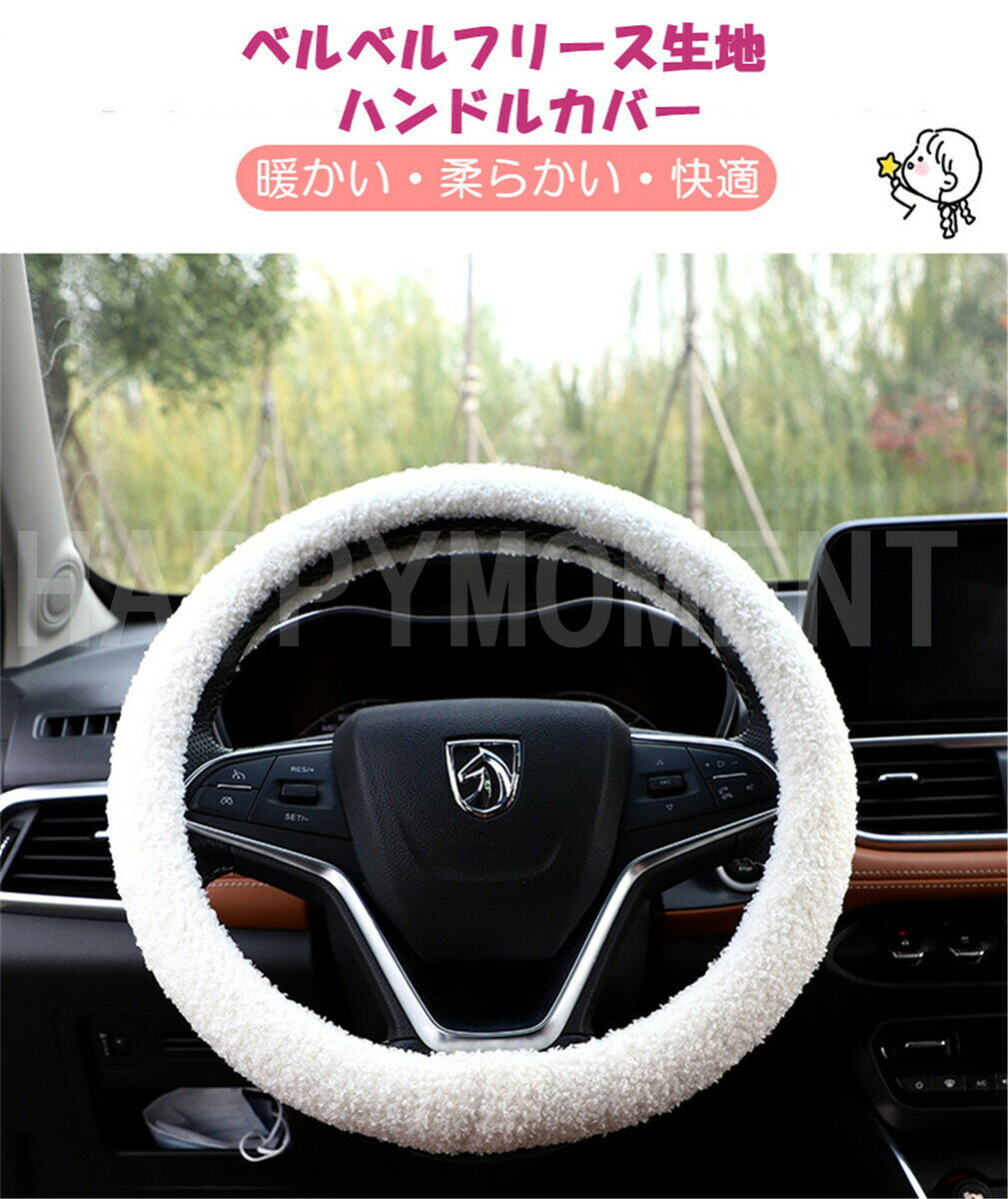 車ハンドルカバー 滑り止め おしゃれ レディース メンズ 直径38cm かわいい ハンドルカバー 冬用 ベルベルフリース生地 シンプル 無地