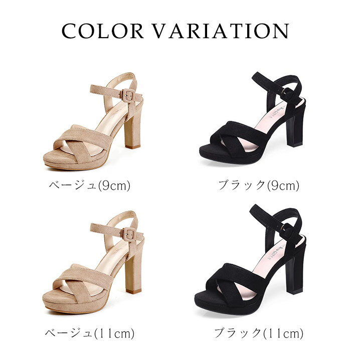 9センチ一部短納期 サンダル 厚底 ハイヒール スエード 太ヒール ヒールサンダル ストラップ クロス 11センチ レディース 靴 歩きやすい 疲れにくい 高め 小さいサイズ かかとあり フェミニン 大人 春夏 ブラック 黒 ベージュ 22.0cm〜24.5cm da735zezel6