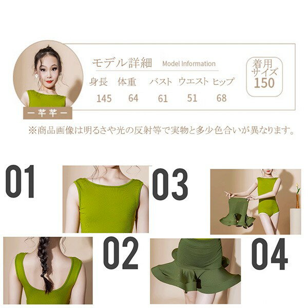 ラテン ダンス衣装 キッズ 社交ダンス衣装 レオタード スカート 2点セット 大きいサイズ 子供ダンス ダンス服 練習着 団体服 演出着 ステージ衣装 舞台衣装 演出用 グリーン緑 110 120 130 140 150 160 170 180 dm082l9l9x1