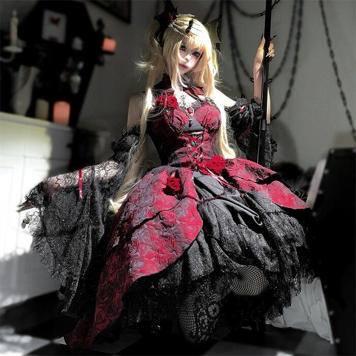 ロリータワンピース レディース キャミソールワンピース ショート丈 ロリータワンピース クラロリ ブラック レッド lolita 小柄 可愛い仮装 日常 コスプレ コスチューム 学生 女の子 ゴスロリ 仮装 パーティ イベント ハロウィン S M L ds606d7d7m3