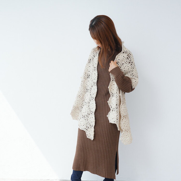 編み物キット #2-11 モチーフつなぎの大判ショール 編み物 毛糸 セット キット ショール かわいい 秋冬 冬 イトヘンラボ 原ウール