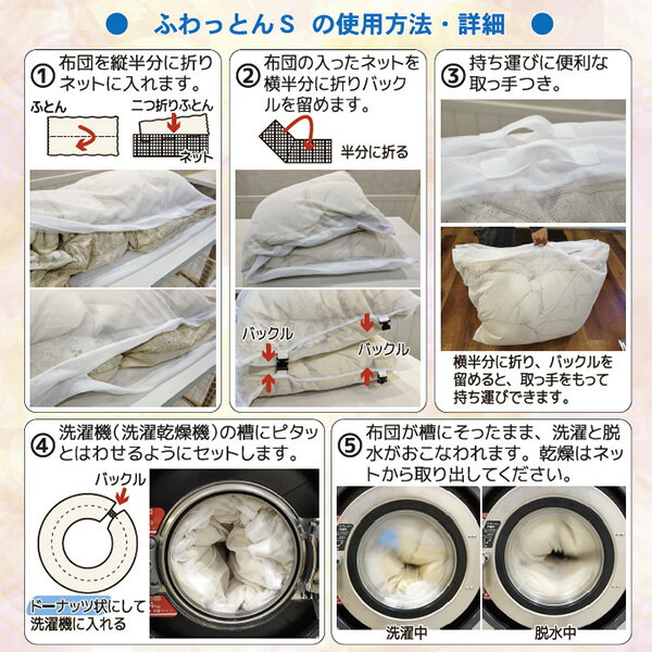 布団専用洗濯ネット ふわっとんS・190cm×65cm コインランドリーの布団洗いに 掛け布団の中綿が片寄らない 布団がそのまま入る超特大サイズ 業務用洗濯ネット