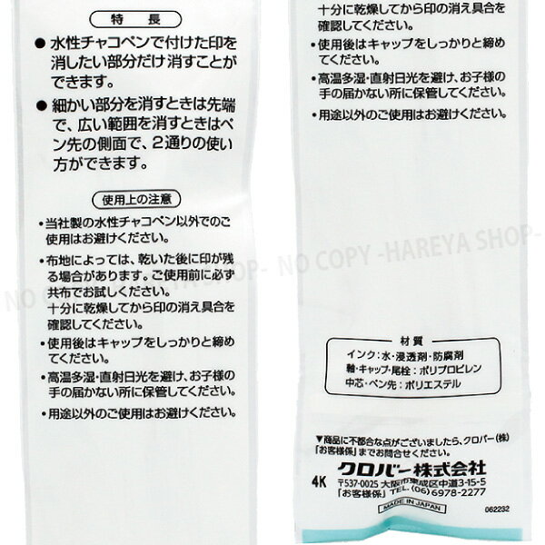 消しペン(水性チャコペン用) 水性チャコペンをきれいに消します 【8個までメール便OK!】 クロバー24-425