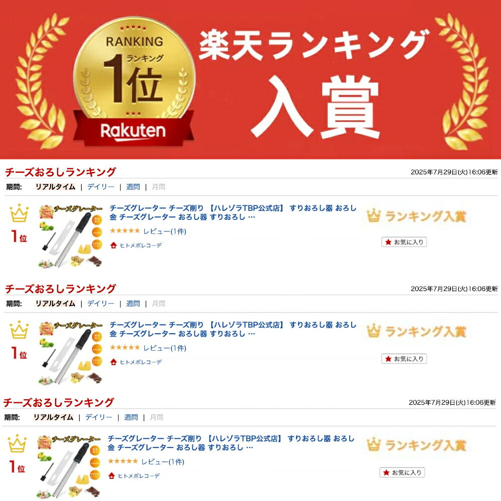 商品詳細商品内容チーズグレーター x 1、保護カバー x 1、掃除ブラシ x 1商品説明【簡単においしいチーズを削れる】チーズグレーターは、パルミジャーノ、レッジャーノのようなハード系のチーズを粉状にすりおろすための道具。ピザをはじめ、パスタ、サラダ、グラタン、パンなどの上からさらさらとおろしたてのチーズをふりかけると、家庭料理がレストランでサーブされる料理のようにグレードアップします。 おろしたてのチーズは新鮮なので風味豊か。【使いやすいデザイン】使いやすさを追求し、刃の形状と角度のデザインをとことん拘って作り上げました。従来のおろし器具と比べて、0.1mm単位で刃の角度を調整したこだわりのブレードを採用したため食材がひっかかることなく、力いらずで簡単におろすことができます。つい力を入れすぎて傷ついてしまう心配もありません。【滑り止めハンドル】人間工学に基づきデザインされたソフトタッチハンドルを採用、で使いやすいです、握りやすいハンドリは滑り止めのシリカゲル材質で手取り感が良い。ハンドルの先端にフック用の穴があり、かけて収納できるので置き場所に困りません。【簡単なお手入れ】上質なステンレス鋼を採用しており、切れ味が良く目詰まりしません。使用後、刃の向きを一つの方向に向いて下から上に撫で水で洗い流してきれいになります。お手入れが楽々で、主婦や一人暮らしの味方です。【優れた素材】錆びないプレミアムステンレス鋼で作られており、角のかみそりの鋭いエッジで集中的にカバーしています。正方形の刃、詰まりにくい、鋭くて鈍くならない、掃除が簡単、耐久性があり、時間の経過とともに錆びない非常に鋭い。【保護カバー付き】保護カバー付きの脱着は簡単で、刃の先端を合わせて滑らすだけです。半透明の素材なので、刃の状態を見ることもできます。【幅広く適応食材】あらゆる種類の一般的な材料を簡単に細断できます, にんじん・大根・キャベツ・きゅうり・ジャガイモなど様, 刃の上で軽く滑らすだけで、カンタンにおろせる。家庭用にも業務用にも適しています。パッケージ内容【パッケージ内容】チーズグレーター本体 x 1本保護カバー x 1個掃除ブラシ x 1個注意事項【注意事項】1、製造上、細かい汚れなどが付着している場合がございますので、濡れた布巾や、ウェットティッシュなどで拭き、よく乾かしてからご使用ください。2、本商品は刃を使用しており、先端などで怪我をする可能性がございますので、お取り扱い時は十分に注意して使用ください。3、お子様の使用は怪我の原因となりますので、手の届かない場所にて保管頂き、ご使用はお控えください。4、紹介画像はイメージです。実際の商品とはデザイン、仕様が一部異なる場合がございます。5、商品のパッケージ、デザイン、仕様、外観は改良のため、予告なく変更する場合がありますのでご了承ください。6、モニターの環境等により、色の見え方に若干差が生じる場合がございます。7、環境保護のため、配送途中の衝撃等から守るのに最低限必要と判断した簡易梱包(箱無し)にてお送る事がございます。予めご了承ください。8、寸法は手測りなので若干の誤差(1cm~3cm )がある場合がございますので、予めご了承ください。9、同じ商品でも生産時期により形やサイズ、カラーに多少の誤差が生じる場合もございます。安心保証安心保証付き♪30日間!!品質保証、返品交換OK。・到着日から30日間対応致します。・在庫がある商品に限ります。・袋やタグが無くても対応致します。・イメージ違いによる返品も可。・出荷時・返送時送料はお客様負担となります。キーワードグレーター チーズ削り チーズグレーター おろし器 おろし金 ゼスターグレーター チーズおろし器 パルミジャーノレッジャーノ 粉チーズ おろし器 おろし金 チーズグレーター すりおろし器 チーズおろし チーズ削り パルミジャーノチーズ チョコレート にんにく レモン 生姜おろし器 ゼスターグレーター チーズグレーター チーズ削り すりおろし器 おろし金 チーズグレーター おろし器 すりおろし パルメザンチーズ しょうが ニンニク プレゼントギフト 家庭用 業務用この商品を見ている人はこちらもチェック【簡単においしいチーズを削れる】チーズグレーターは、パルミジャーノ、レッジャーノのようなハード系のチーズを粉状にすりおろすための道具。ピザをはじめ、パスタ、サラダ、グラタン、パンなどの上からさらさらとおろしたてのチーズをふりかけると、家庭料理がレストランでサーブされる料理のようにグレードアップします。 おろしたてのチーズは新鮮なので風味豊か。【優れた素材】錆びないプレミアムステンレス鋼で作られており、角のかみそりの鋭いエッジで集中的にカバーしています。正方形の刃、詰まりにくい、鋭くて鈍くならない、掃除が簡単、耐久性があり、時間の経過とともに錆びない非常に鋭い。【使いやすいデザイン】使