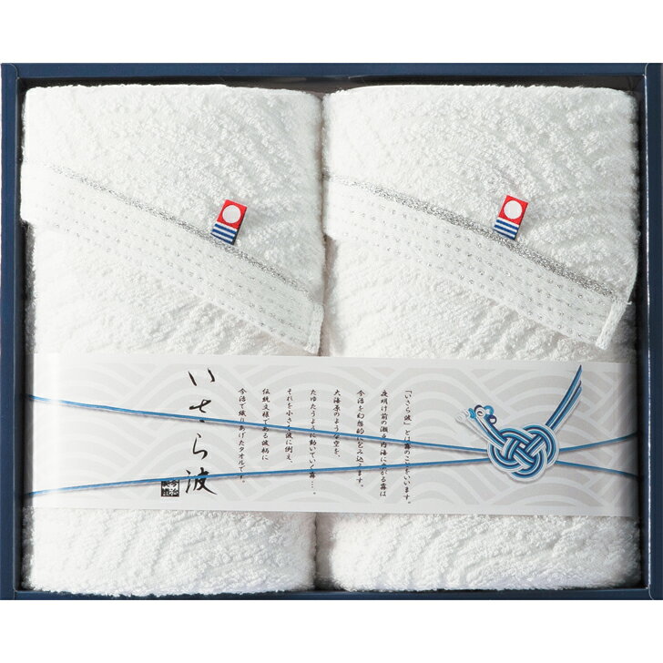 今治タオルギフト 今治いさら波フェイスタオル2P AM5-87-3 内祝 結婚祝い お歳暮 父の日 香典返し 敬老の日 七五三 孫 両親 自宅 プレゼント 御礼 成人式 御年賀 瀬戸内海に広がる霧を小さな波に例え、伝統紋様である波柄に織り上げたタオル 成人の日