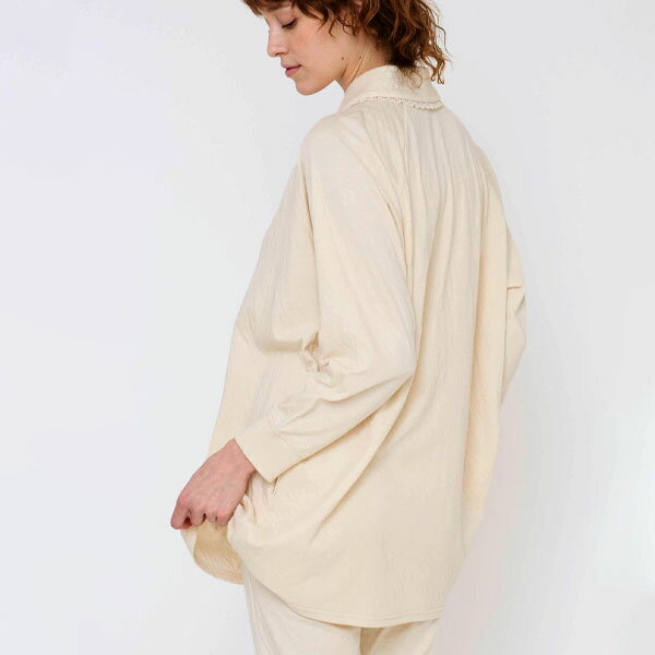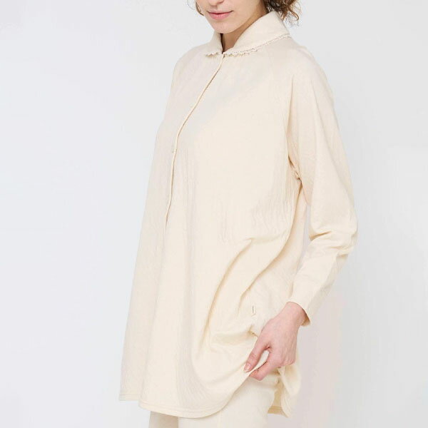 nanadecor オーガニックコットン リリー襟付きパジャマトップス | オーガニック コットン 綿100 パジャマ ルームウェア 前開き 襟付き あったか 秋冬 敏感肌 カットソー リリー レース トップス ナナデェコール nanadecor