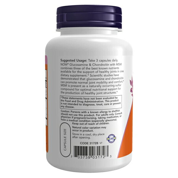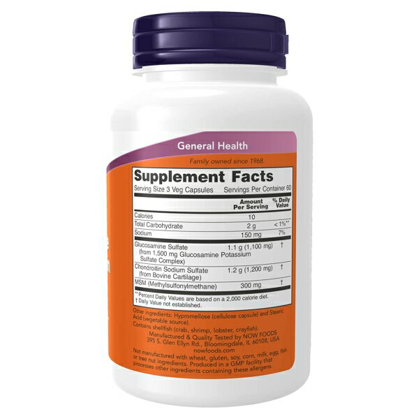 【店内8千円以上1000円OFFクーポン】NOW Foods グルコサミン コンドロイチン with MSM 180粒 カプセル ナウフーズ Glucosamine & Chondroitin with MSM 180capsules 健康サプリメント 栄養補助食品 海外 アメリカ