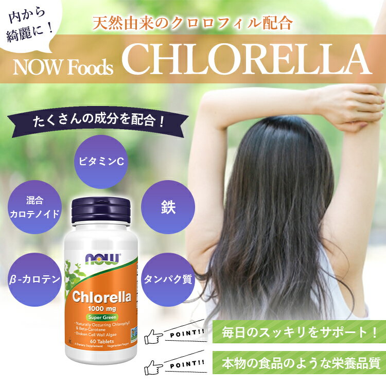 【店内8千円以上1000円OFFクーポン】[クロロフィルで口腔環境ケア]ナウフーズ クロレラ 1000mg タブレット 60錠 NOW Foods CHLORELLA 1000mg 60 TABS ベータカロテン 混合カロテノイド ビタミンC 鉄 タンパク質 サプリメント
