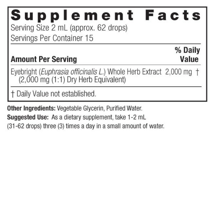 Nature's Answer アイブライトの液体ハーブエキスは他に類を見ないものです。1回分のミリグラム数を比較すると、スポイト2杯(2mL)で2000mgもの高濃度ハーブエキスが摂取できます。これは、はるかに薄いチンキ剤とは異なり、真の1:1液体ハーブエキスであることを示しています。ビーガン、非遺伝子組み換え、コーシャ認証、アルコールフリー。