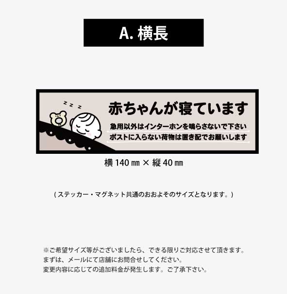 【ステッカー/マグネット】(横長・縦長)選べる6カラー赤ちゃんが寝ています 置き配表示インクジェットステッカー【防犯・セキュリティ・警告】【メール便対応】