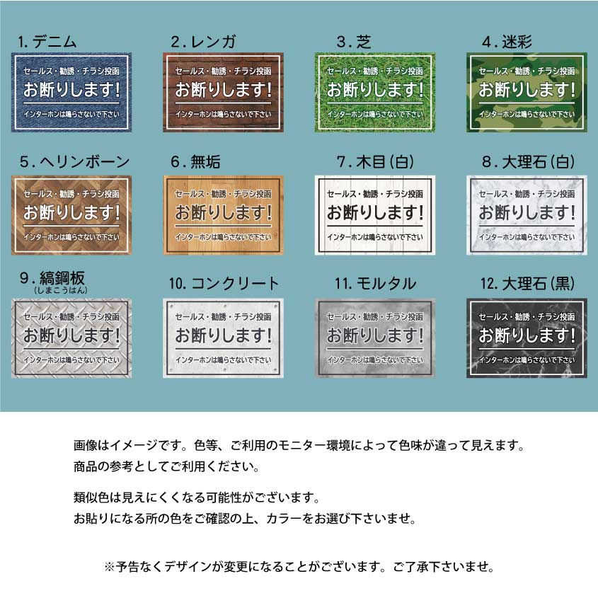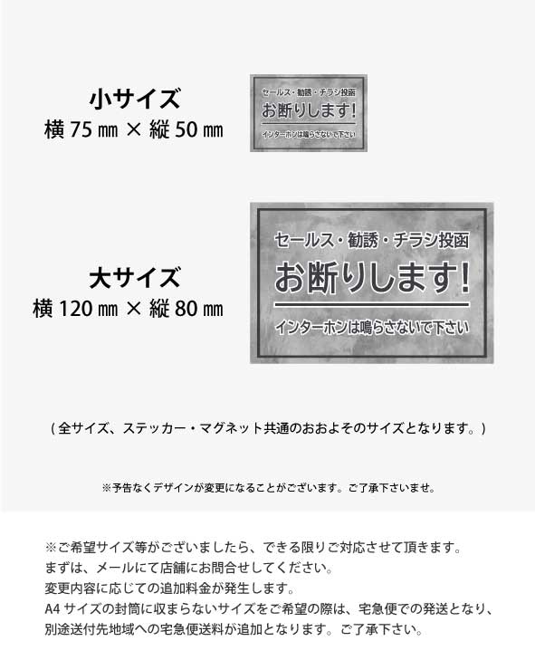【ステッカー/マグネット】2サイズ/パターン全12種類セールス・勧誘・チラシ投函 お断り/パターン下地インクジェットステッカー【防犯・セキュリティ・警告】【メール便対応】