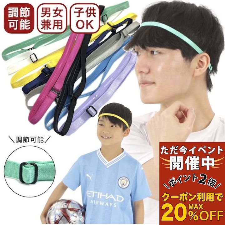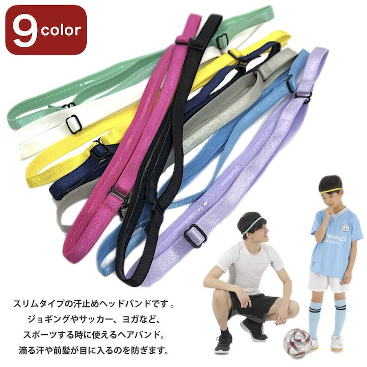 【ただ今 感謝祭ポイント2倍】[調節可能][男女兼用][子供OK]ヘッドバンド 9カラー 汗止め スリム 無地 ヘアバンド 細い 細め 大きめ 男女兼用 メンズ レディース キッズ スポーツ スポーツヘアバンド 子供 サッカー ジュニア テニス ヨガ 運動 ヘッドバンド 前髪 黒