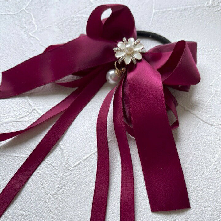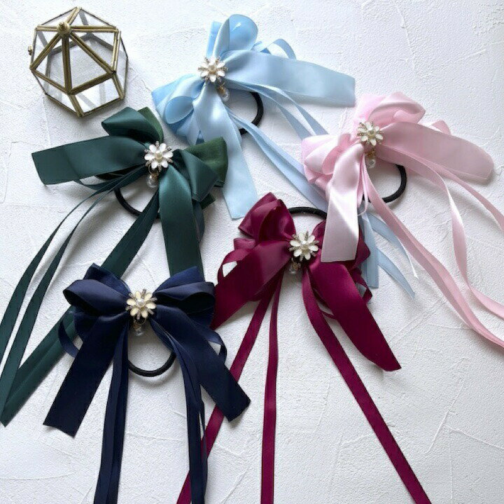 【LINE友だち200円引き対象】【ロング リボンヘアゴム】5カラー ロング リボン ヘアゴム ヘアアクセサリー ワインレッド 赤 ネイビー ネイビー 水色 グリーン ピンク 髪飾り 花 パール レディース 大人 子供 キッズ 発表会 衣装 アイドル 推し活 ダンス SP-GMP20007
