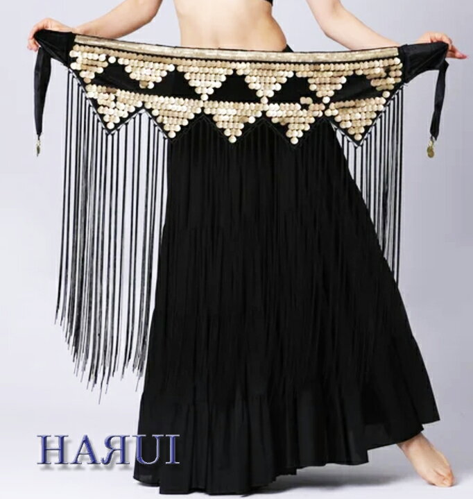 新入荷 ベリーダンス ベロア ロング フリンジ ヒップスカーフ 貝形飾り