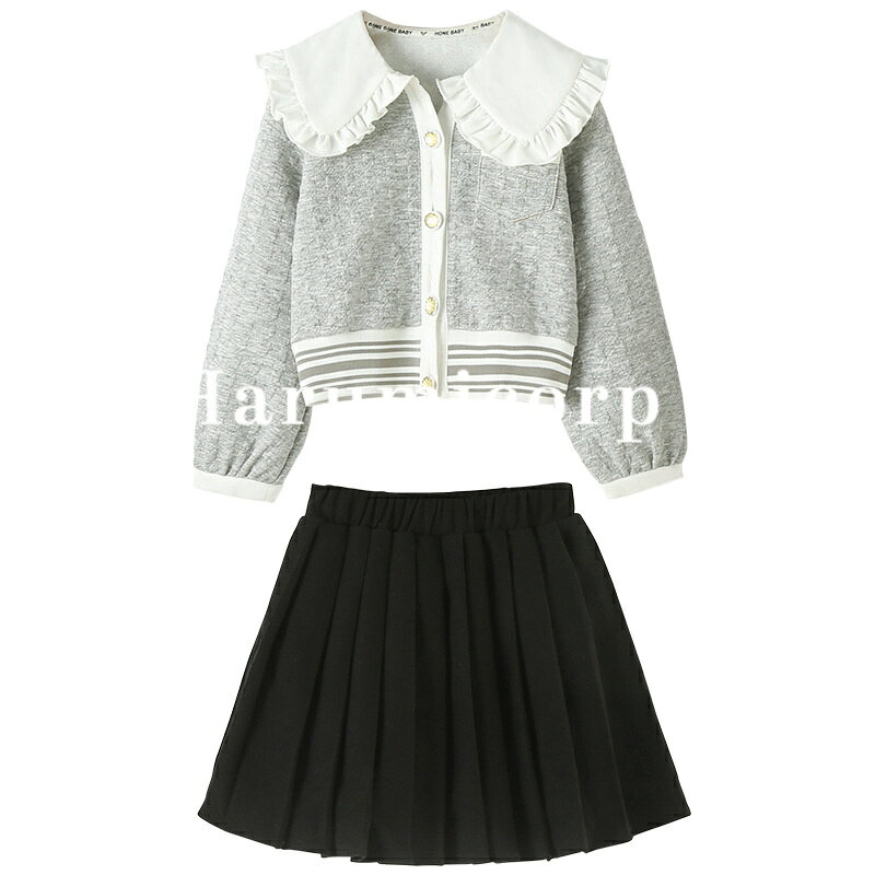 子供服 セットアップ 女の子 キッズ 長袖 春秋冬 上下セット 2点セット 韓国子供服 セーターカーディガン +プリーツスカート 可愛い 女児 おしゃれ 通学着上品 お嬢様 お呼ばれ