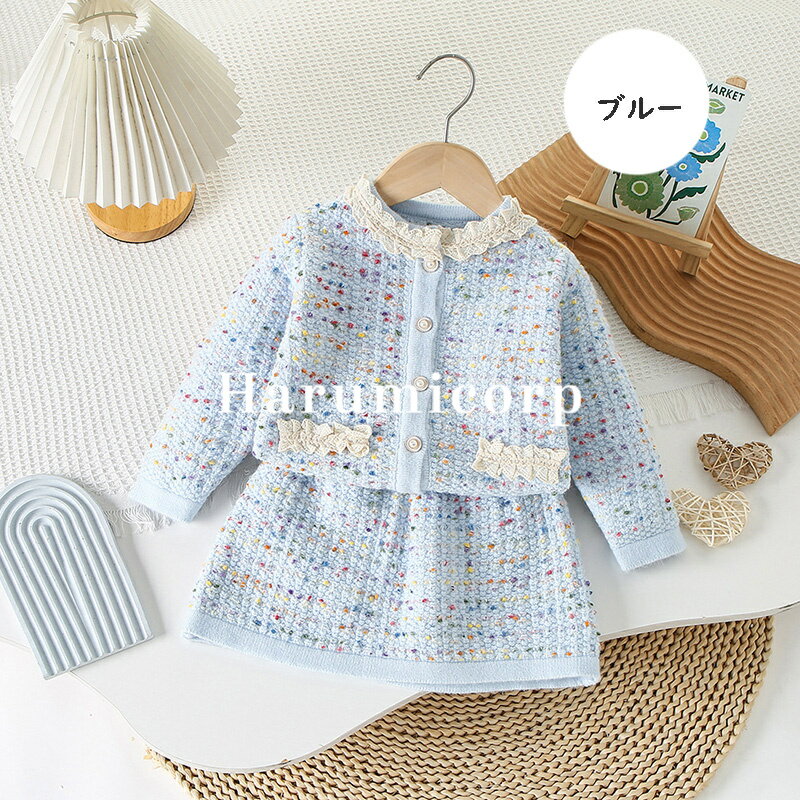 セットアップ キッズ ベビー服 女の子 カーディガン プリーツスカート子供服 上下セット トップス 長袖 ニット セーター カットソー ジュニア 赤ちゃん おしゃれ 可愛い 90cm 100cm 110cm 120cm 130cm 春服 秋物 冬入学 入園 誕生日 プレゼント 幼稚園 小学生 お出かけ 新品