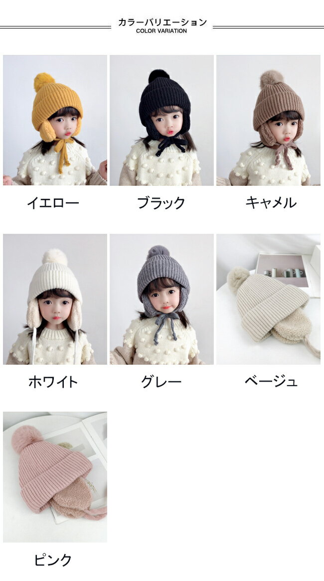 裏起毛 ニット帽 女児 ニットキャップ 耳あて付き 帽子 男児 フライトキャップ キッズ キャップ 子供 裏起毛帽子 ポンポン付き 暖かい 冬帽子 裏ボア ムートン ジュニア ニット帽 男女兼用 ホワイト