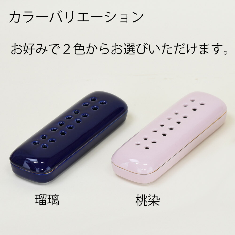 【P3倍!11/28まで】 線香皿 横 線香 横 横置き 香炉 お供え 仏具 仏壇 線香置き【寝かせる線香皿 花摘 有田焼 瑠璃 桃色 大(幅20cm)】お仏壇のはせがわ