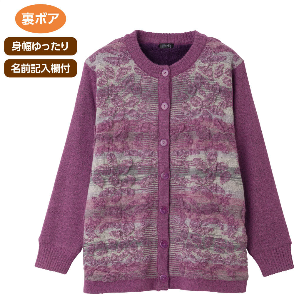 かすり調丸洗い裏ボア カーディガン M~L シニアファッション 70代 80代 90代 アクティブシニア 100歳 レディース 婦人 用