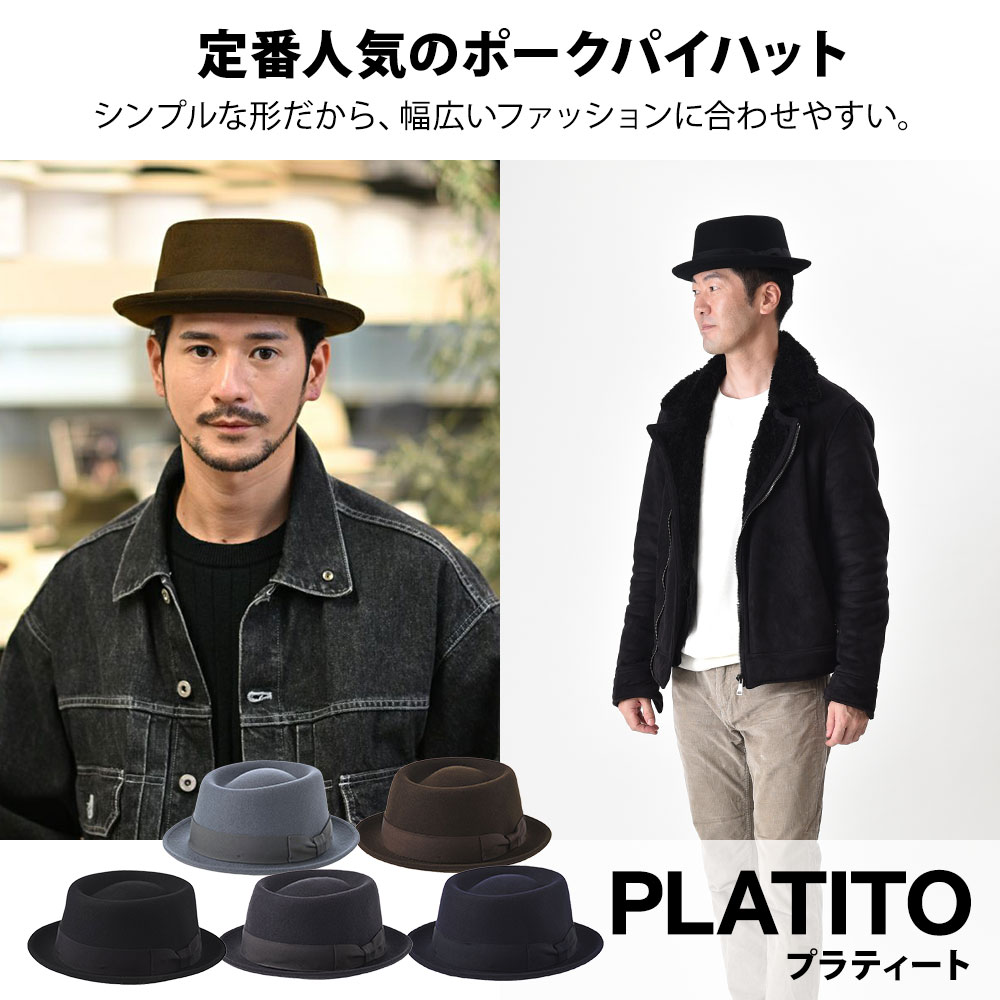 BIGALLI ポークパイハット 帽子 ウールフェルト100% メンズ 秋 冬 紳士帽子 フェルト帽 大きいサイズ つば短 シンプル フォーマル カジュアル 普段使い メンズハット ビガリ エクアドル製 PLATITO(プラティート)