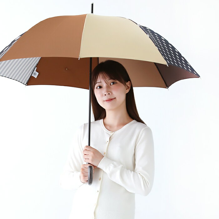 【最大60%OFFクーポン配布中12/4-5】傘 レディース 60cm 大きめ ブランド 長傘 雨傘 晴雨兼用 +RING プラスリング 60cm ×8本骨 手開き式 傘 レディース 60cm 日傘兼用 ブランド 長傘 ブラウン ドット カサ かさ 大きい グラスファイバー骨 撥水 軽量 丈夫