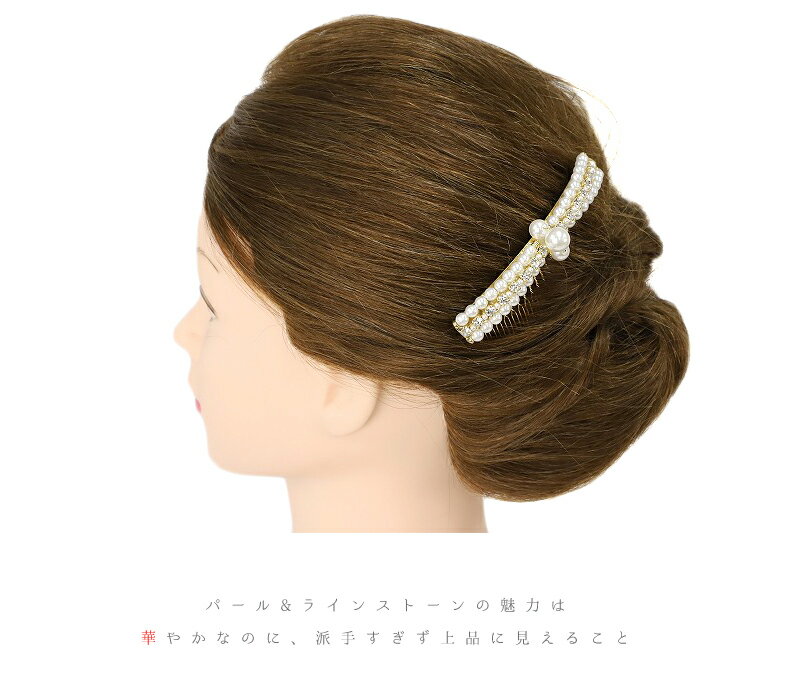 髪飾り 成人式 振袖 袴 花 かんざし ゴールド 白 コーム キラキラ パール ラインストーン リボン おしゃれ かわいい 洋装 コーム型 日本製 シンプル 和装 No.10-2718-ss