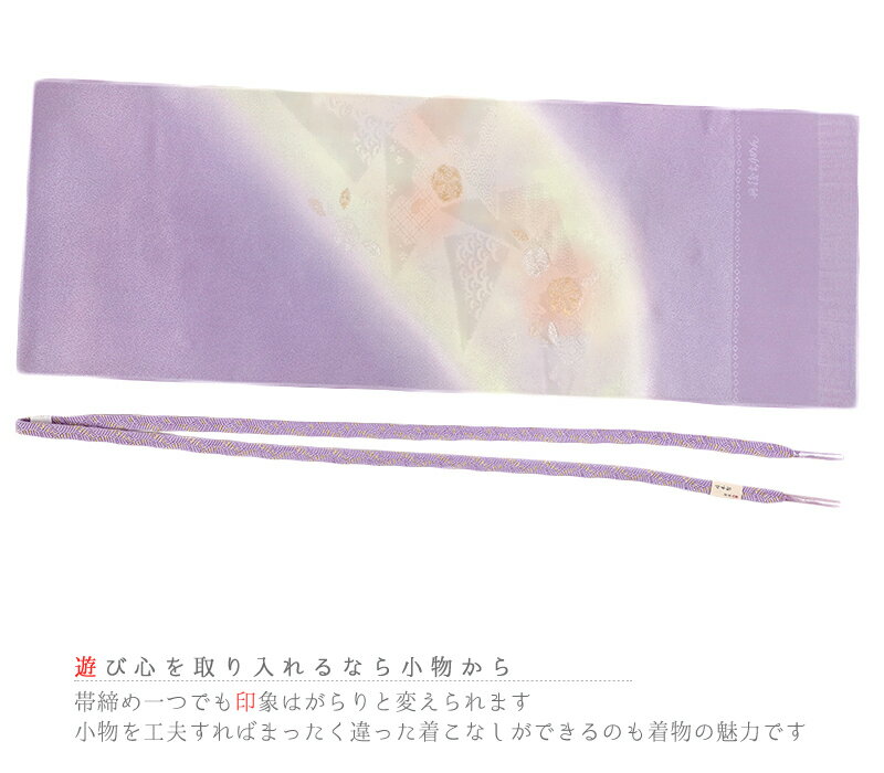 帯締め 帯揚げ セット 丹後ちりめん 翠嵐工房 京くみひも 京組紐 正絹 金属糸 金糸 銀糸 薄紫 薄黄緑 白 サーモンピンク 綸子 青海波 七宝 立涌 亀甲花菱 牡丹 桜 花 華 三角 暈し グラデーション 並尺 高級 逸品 フォーマル 可愛い 大人可愛い おしゃれ 使える 日本製 締めやすい 締まる 帯締め帯揚げセット 着物 和装 No.8-3133 サイズ表 帯締め 長さ 約151cm(房を含まず・房は片方約4.5cmずつ)× 幅 約1.5cm 帯揚げ 長さ 約169cm × 幅 約31cm 商品詳細 ■素材 [帯締め]・正絹 ・金属糸 [帯揚げ]・正絹 ■詳細 [帯締め]・翠嵐工房 ・京組紐 ・金糸 ・日本製 [帯揚げ]・丹後ちりめん ・綸子 ・暈し ・グラデーション ・日本製 ■質感 [帯締め]正絹ならではの締め心地の良さ [帯揚げ]しっかりとした上質な手触り ■カラー [帯締め]・地色:上品な薄紫 ・差し色:華やかな金糸 [帯揚げ]・地色:上品な薄紫 ・差し色:淡く上品な薄黄緑 白 サーモンピンク 金銀糸 ■合せる着物 訪問着 付下げ 色無地 小紋 紬 など ■着用シーズン 春 秋 冬 ■着用シーン 結婚式 卒業式 入学式 卒園式 入園式 七五三 お宮参り お茶会 パーティー 観劇 映画鑑賞 など ■おすすめポイント ・三角模様の中に青海波や七宝などの文様が入り、牡丹などお花のお柄が映えた綸子が美しい ・何百年の歴史を持つ高級絹織物丹後ちりめんで絹の風合いを感じる帯揚げ ・伝統的な京くみひもを、現代に継承する『翠嵐工房』 状態 ■新品・未使用品 コメント 品質にこだわった使いやすくお洒落で高級な帯揚げ帯締めセットのご紹介です。 合わせ方それぞれに、自分だけのお洒落を表現できる奥深さ… 和の装いは、そんな小物使いにも楽しみがございます。 気品ある華やかな雰囲気で素敵な気分に。 帯締めは人気の翠嵐工房の物になります。 伝統的な京くみひもを、現代に継承する『翠嵐工房』。 翠嵐工房では、伝統工芸士の造りだす手組み紐技術を現代まで引き継ぎ、 さらに伝統と新しい感性が融合した斬新なデザインの名品を数多く生み出しています。 伝統工芸士の作り出す、美しい手組みの帯締めは、締めやすく緩みにくいので快適にお使いいただけます。 お色は上品な薄紫色の地に華やかな金糸のアクセントが。 女性らしく可愛らしい色合いがとても素敵なひとしなとなっております。 帯揚げはさらりとした心地良い手触りが特徴のちりめんの中でも高品質な丹後ちりめんです。 絹100%の素材で質感が良く、高級感を感じます。 お色は上品な薄紫色の地に淡く上品な薄黄緑 白 サーモンピンク 金銀糸の差し色が。 三角模様の中に青海波や七宝などの文様が入り、 牡丹などお花のお柄が映え、気品ある贅沢な仕上がりに。 淡いながらも落ち着いた印象の色合いなので、大人の着こなしにピッタリに仕上がりました。 セットでも単品でもそれぞれお役立て頂けるものをセットにしております。 小物を変えるだけで雰囲気が違って見えますよね。 その日の気分や、シーンに合わせて楽しむのもひとつ。 同じものでも結び方、色柄の出し方を変えてもまた違う表情に。 こちらお品は一点のみとなっておりますので、 ぜひ、この機会にお見逃しのないようにお願い致します。 uematsu 50213202