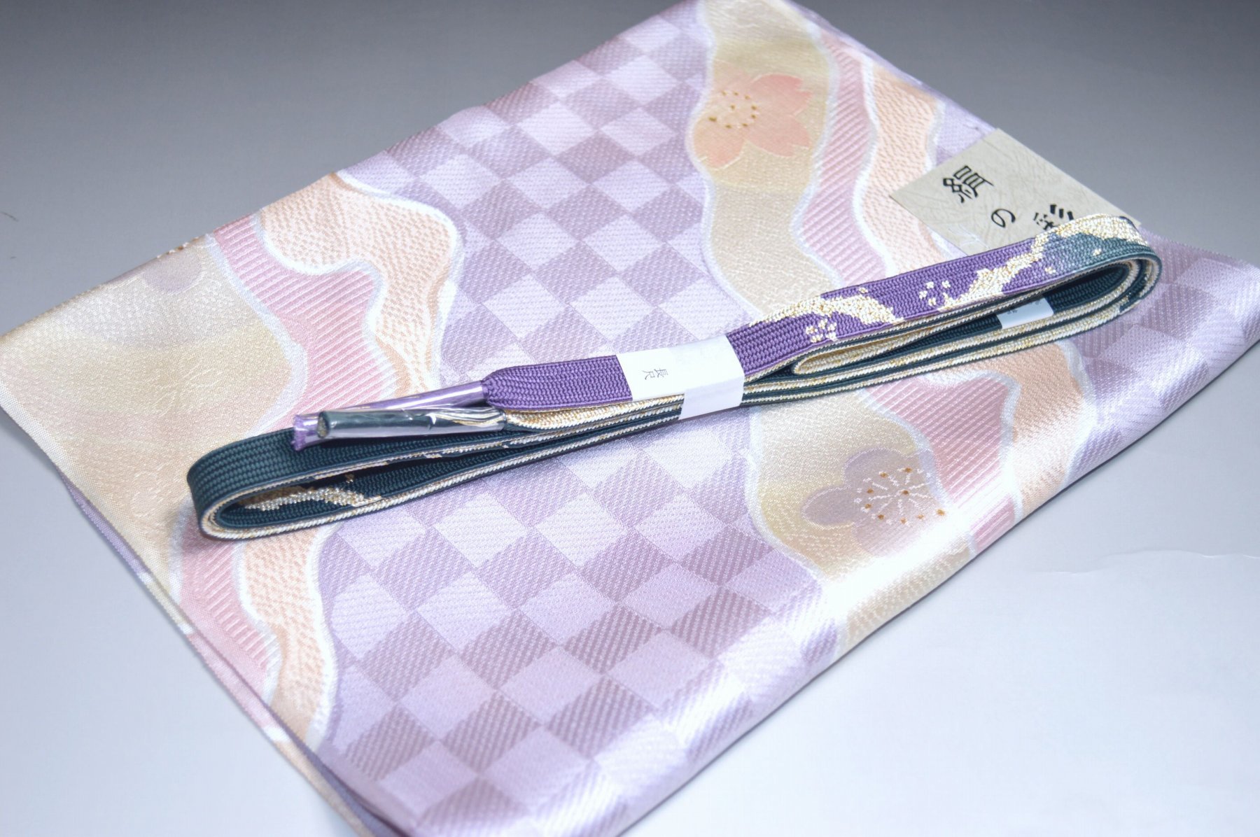 帯揚げ 帯締め セット 丹後ちりめん 翠嵐工房 京京組紐 正絹 金属糸 金糸 銀糸 薄紫 薄黄緑 白 サーモンピンク 綸子 青海波 七宝 立涌 亀甲花菱 牡丹 桜 花 三角 暈し グラデーション 並尺 フォーマル おしゃれ No.8-3133-ss