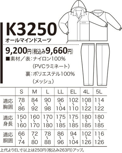【5%OFFクーポン配布★11/25-26】レインスーツ 上下セット 合羽 かっぱ レインウエア クロダルマ 3250 オールマインドスーツ 裏地 総メッシュ仕上げ 撥水性 防水性 ゴルフ 釣り アウトドア 合羽