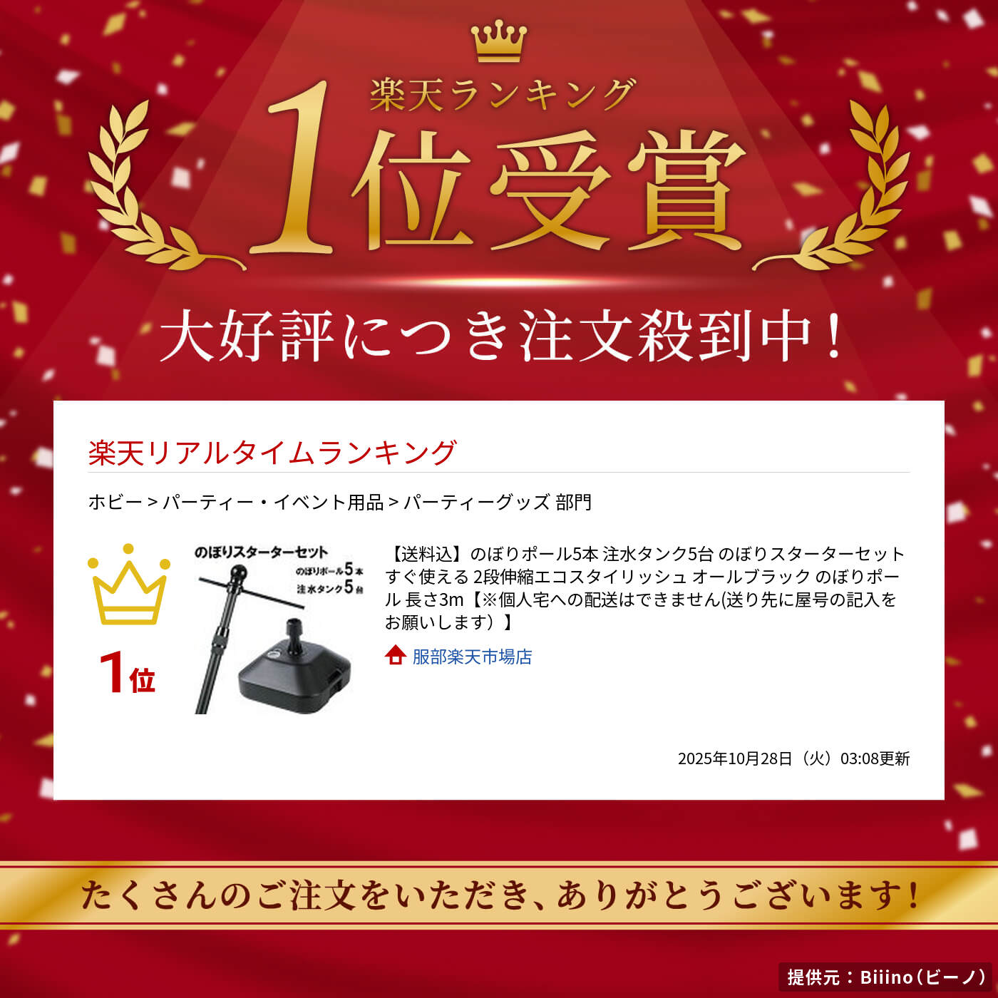 【送料込】のぼりポール5本 注水タンク5台 のぼりスターターセット すぐ使える 2段伸縮エコスタイリッシュ オールブラック のぼりポール 長さ3m【※個人宅への配送はできません(送り先に屋号の記入をお願いします)】