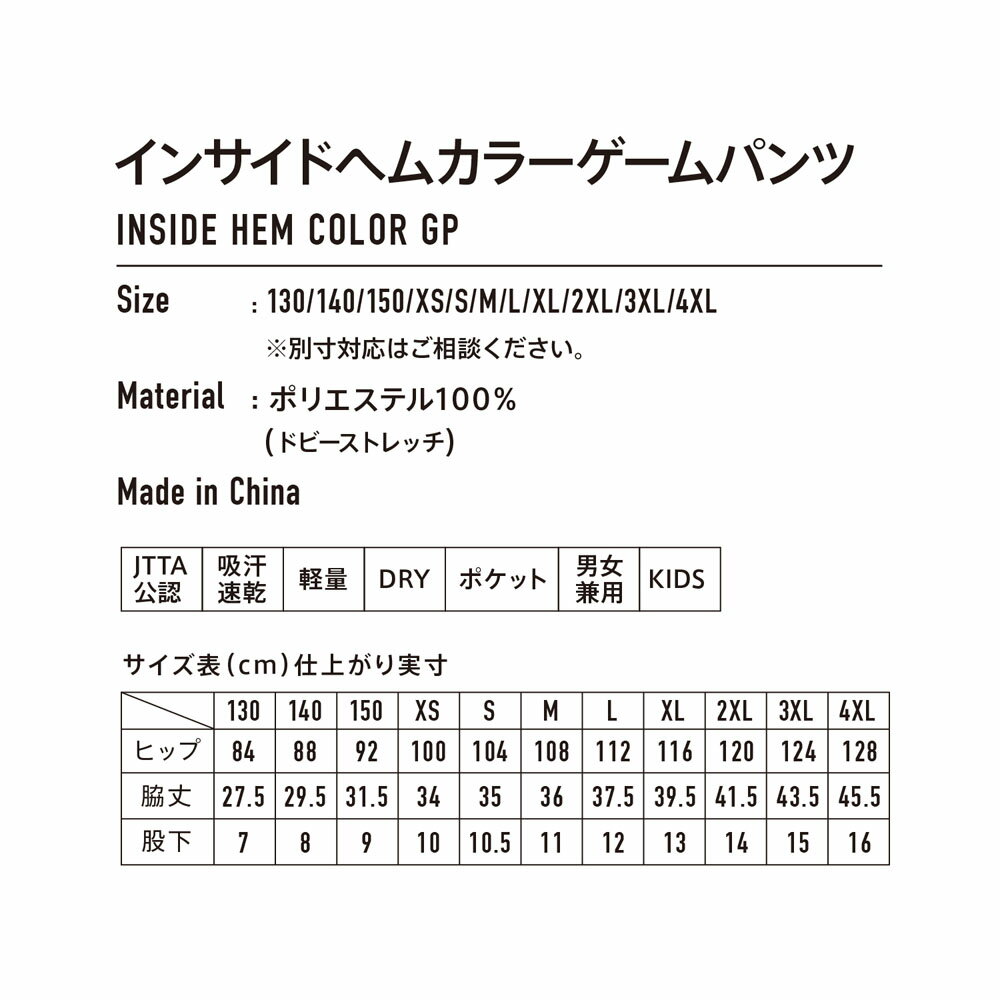 素材:ポリエステル100(ドビーストレッチ) 機能:JTTA公認、吸汗速乾、軽量、DRY、ポケット付き、男女兼用、KIDS対応 原産国:中国吸水速乾性に優れた軽量の素材を使用したゲームパンツ。肌離れがよく快適な着心地を持続します。裾のインサイドに鮮やかな生地をあしらい、動きに合わせて発色の良いカラーが見え隠れするのがポイント。BK×TQ、BK×HPからチョイスしてください。
