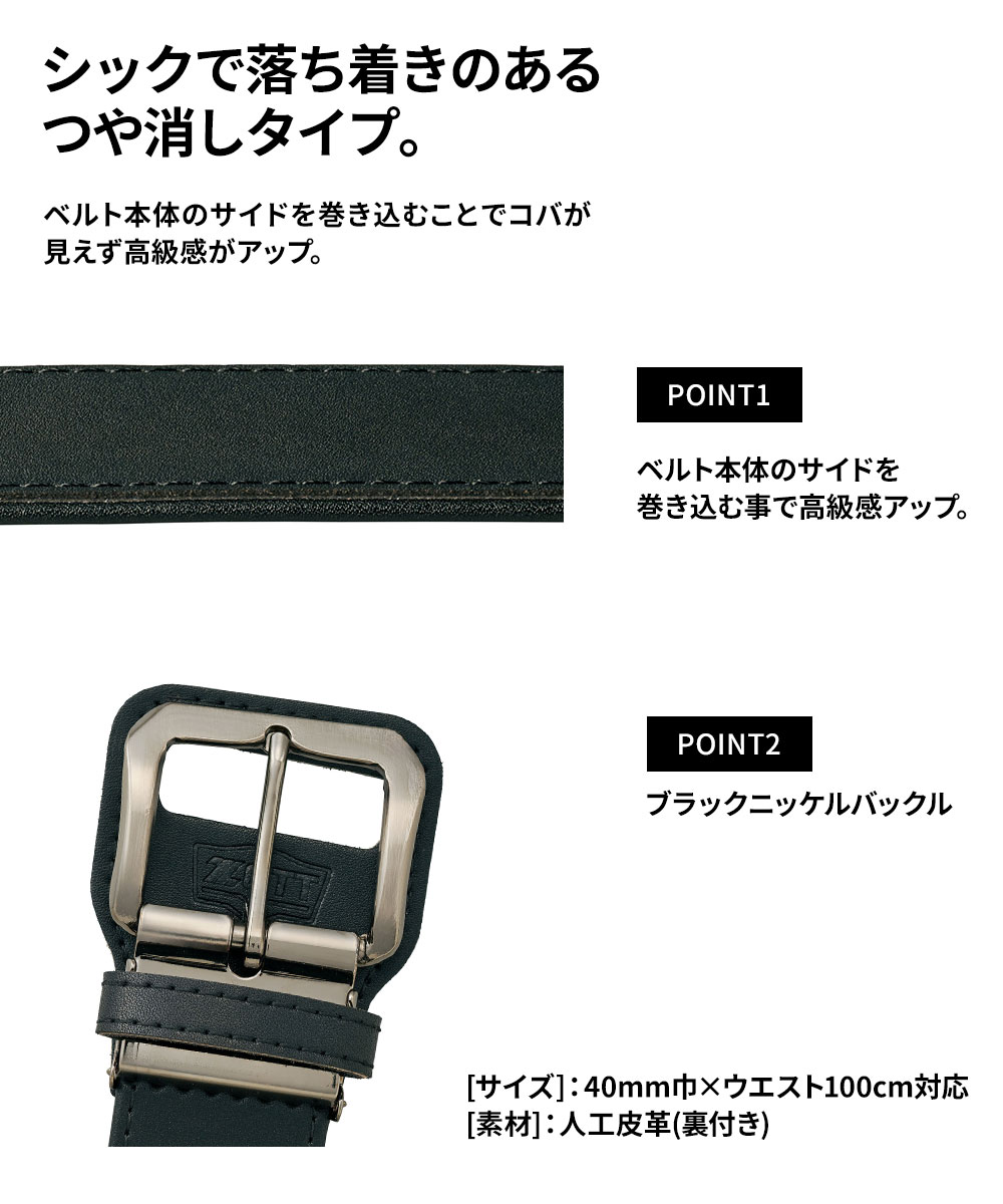 ■シックで落ち着きのあるつや消しタイプ。 ベルト本体のサイドを巻き込むことでコバが見えず高級感がアップ。 [カラー]:ブラック(1900)|ロイヤルブルー(2500)|ネイビー(2900)|レッド(6400)|Wエンジ(6801) [サイズ]:40mm巾×ウエスト100cm対応 [素材]:人工皮革(裏付き) [原産国]:中国 ■関連ワード■ 野球 ベースボール ソフトボール スポーツ ブランド スポーツメーカー おすすめ 人気 丈夫 練習 練習用 トレーニング レーニング用 運動 部活 部活動 野球部 クラブ クラブチーム サークル 社会人 社会人野球 企業チーム 大会 県大会 試合 公式戦 リーグ 地方予選 学生野球 高校野球 大学野球 硬式野球 一般硬式 中学硬式 一般軟式 中学軟式 軟式野球 草野球 野球対応 野球用品 野球用具 野球道具 野球器具 野球グッズ ソフトボール用品 ソフトボール用具 一般用 男女兼用 ユニセックス ユニセックス用 少年用 子供用 子ども用 こども用 キッズ用 男の子 女の子 男子 女子 学童用 小学生 小学校 低学年 中学年 高学年 中学 中学生 中学校 高校生 高校大学 大学生 大人 大人用 メンズ メンズ用 男性用 レディース用 ウィメンズ用 女性用 婦人用 球団 監督 コーチ マネージャー 入部 学生 かっこいい 定番 オールシーズン 通年対応 春 夏 秋 冬 プレゼント お誕生日 バースデイ ギフト お祝い 卒業祝い 入学祝い 贈りもの 贈り物 贈物 贈答品 お返し ※当店では在庫一括管理システムにより複数店舗の在庫を共有しております。 ご注文の殺到などの影響で、在庫数の自動更新システムのタイミングにより、 既に完売した状態でも一時的にまだご注文できる状態のままとなり、 商品のご用意が出来ない場合もございます。予めご了承ください。 ※本商品はご注文タイミングやご注文内容によっては、 購入履歴からのご注文キャンセル、修正を受け付けることができない場合がございます。 ●返品・交換についてはこちら ※メーカー希望小売価格はメーカーサイトに基づいて掲載しています