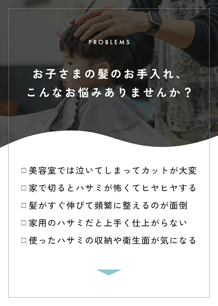 商品名 子供用散髪セット 商品説明 ご家庭で安心して使える、子ども用の散髪セットです。 安全設計のはさみで、お子さまのヘアカットを手軽に、楽しく。 チャイルドロック付きで収納時も安心です。 安全ばさみ、安全すきばさみ、安全コームの3点を専用ケースにまとめて、持ち運びや収納も便利! サイズ(約) 安全ばさみ 約14.5cm×6.7cm 安全すきばさみ 約14.5cm×6.7cm 安全コーム 約12.2cm×3.5cm 専用ケース 約17.5cm×8.2cm カラー ピンク / ブルー 素材 ステンレス、プラスチック 重量(約) 総重量:約 133g 専用ケース:約 53g 安全ばさみ:約 37g 安全すきばさみ:約 35g 安全コーム:約 8g セット内容 専用ケース 安全ばさみ 安全すきばさみ 安全コーム 注意事項 ・本セットは必ず保護者の方が使用し、お子さまご本人だけでのご使用は絶対におやめください。 ・お子さまがひとりで扱わないよう、保護者の方が必ずそばで管理・監督してください。 ・本来の用途以外には使用しないでください。 ・ケースの開閉時やツールの取り出し時には、指先のケガに十分ご注意ください。 ・使用後は刃に付着した髪の毛や水分をしっかり拭き取り、錆びや衛生面のトラブルを防ぐため清潔な状態で保管してください。 ・刃物を含む製品のため、使用後は必ずお子さまの手の届かない場所に保管してください。 ・製品仕様やパッケージは改良のため予告なく変更される場合があります。 ・サイズやデザイン、カラー等は生産時期やロットにより若干の差異が生じることがあります。 ・商品の色は、画面上の画像と実物とでは多少異なる場合があります。あらかじめご了承ください。 生産国 china 【関連キーワード】 【4点セット】散髪 はさみ 子供 髪 すきばさみ 散髪 セット セルフカット 散髪ハサミ 散髪用 はさみ 前髪 コーム 安全ばさみ チャイルドロック ハサミ ステンレス 先端 丸形 くし キッズ 赤ちゃん 幼児 ベビー 家庭用 散髪セット 髪の毛 前髪 ヘアカット専用ケース付き 持ち運び トリミング 子ども 散髪