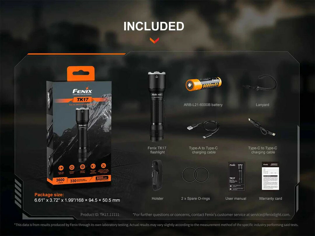 Fenix TK17 タクティカルフラッシュライト 最大3600ルーメン USB-C充電式 6000mAhバッテリー付属 IP68防水 [メーカー保証5年]