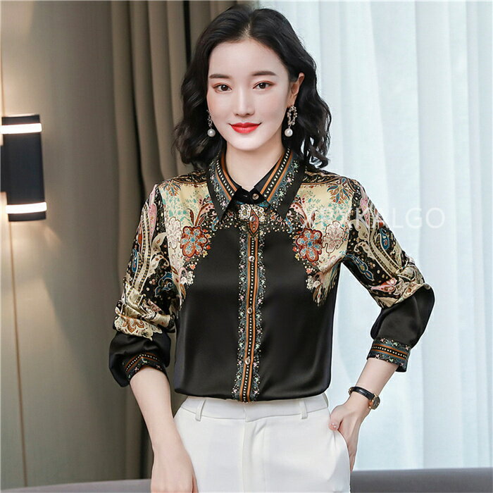 【スーパーSALE20%OFF】【シルク100%】シルクシャツ ブラウス 長袖 シルクシャツ オシャレ レディースシャツ スタンドカラーシャツ 幾何柄 透け 滑らか カジュアル 春 秋 夏 トップス 大人 通勤 OL フォーマル 入園式 入学式 母の日 30代 40代 50代 60代 プレゼント ギフト