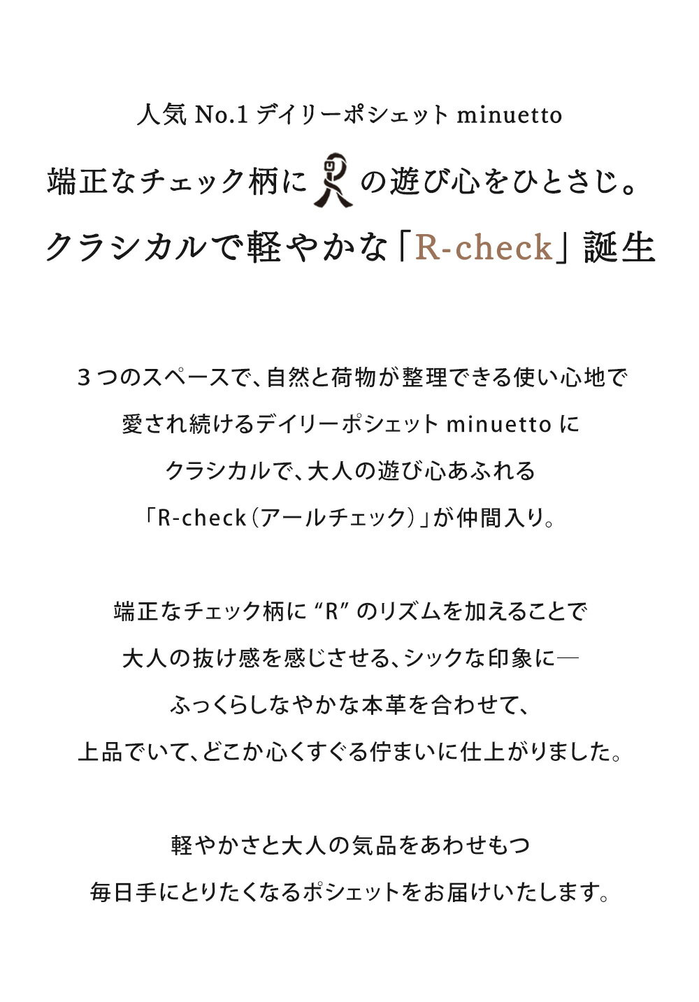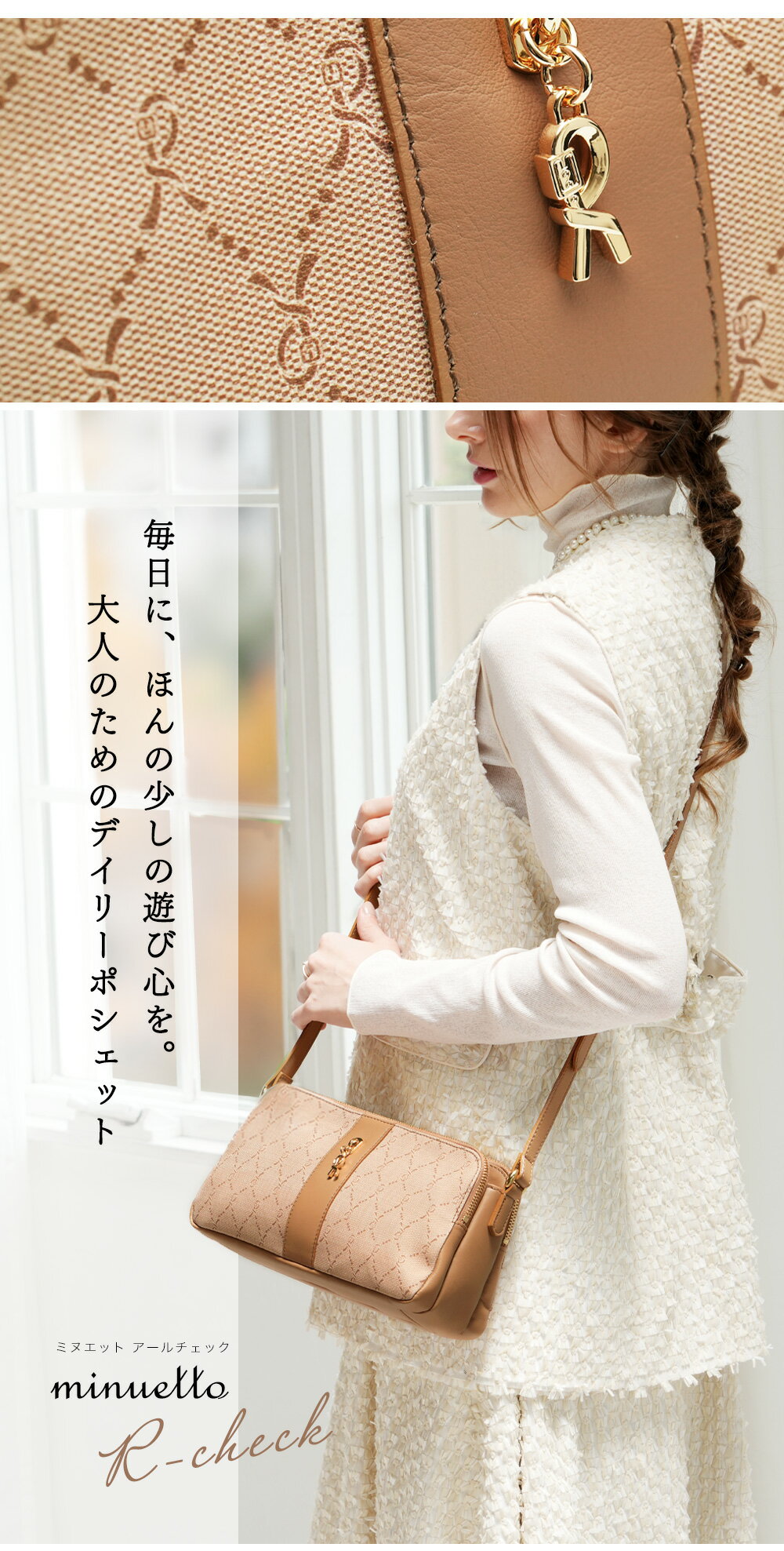 【ロベルタ】人気No.1 デイリーポシェットにクラシカルで遊び心あふれる「R-check」登場◇3ポケットで整理できるminuetto R-check(ミヌエット アールチェック) 肩掛け 斜めがけ レディース Giada Roberta di Camerino ロベルタディカメリーノ 本革 軽量 362-R20395