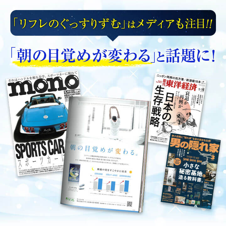 機能性表示食品 リフレのぐっすりずむ【届出番号F751】 ■届出表示 本品に含まれるL-テアニンは、睡眠の質をすこやかに改善 (睡眠効率 ■機能性関与成分量 L-テアニン 200mg ■内容量 10.76g(347mg×31粒) ■原材料 L-テアニン、ゼラチン、ステアリン酸カルシウム、グリシン、ビタミンB1、ビタミンB6、二酸化ケイ素、ビタミンB12/デキストリン(国内製造)、GABA、乳タンパク加水分解物、時計草エキス末(トケイソウ抽出物、デキストリン) ■栄養成分表示 1日(1粒)あたり エネルギー 1.38kcal、たんぱく質 0.30g、脂質 0.01g、炭水化物 0.01g、食塩相当量 0.0005mg、L-テアニン 200mg ■1日あたりの摂取目安量 1日目安:1粒 ■保存方法 高温多湿・直射日光を避け、涼しい場所に保存してください。 ■賞味期限 商品パッケージ(裏面)に記載 ■注意事項 ●高温多湿・直射日光を避け、涼しい場所に保存してください。 ●1日の摂取目安量を守ってください。多量摂取により疾病が治癒したり、より健康が増進するものではありません。 ●降圧剤、興奮剤を服用している方は、医師、薬剤師にご相談ください。 ●本品 は、疾病に罹患している者、未成年者、妊産婦(妊娠を計画している者を含む。) 及び授乳婦を対象に開発された食品ではありません。 ●疾病に罹患している 場合は医師に、医薬品を服用している場合は医師、薬剤師に相談してください。 ●体調に異変を感じた際は、速やかに摂取を中止し、医師に相談してください。 健康食品/悩みサポート 広告文責:株式会社リフレ 企画販売:株式会社リフレ 0120-22-9299 〒362-0035 埼玉県上尾市仲町1-7-28 区分:日本製・機能性表示食品(届出番号:F751)