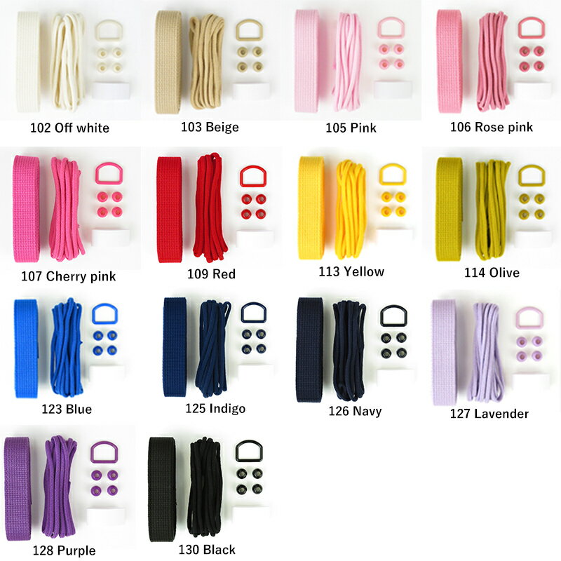 副資材セット FULL×FULL Plain ベーシックカラー【 テープ/Dカン/コード/ループエンド/ネームテープ 】5点セット販売 | 持ち手 紐 作り方 お着替え袋 巾着 ハンドメイド 手芸 手作り カバンテープ