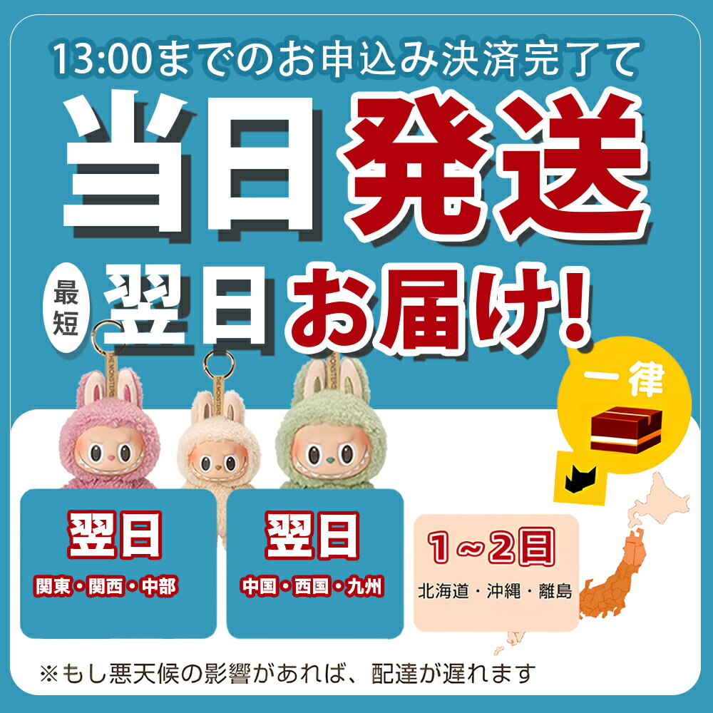 ラブブが新登場! それぞれのキャラクターにカラーイメージのついている可愛いデザインとなっております 1BOXにつき1体のラブブが封入されており、内容は完全ランダム アソートBOXの場合は6体封入しております 種類:ノーマル6種+シークレット1種 商品サイズ:高さ約170mm 素材:PVC/ポリエステル繊維/ワイヤー 【注意事項】 ※こちらの商品は開封するまで完全ランダムです カラーを選ぶことはできません 当店の商品はすべて正規品です、安心してお買い求めください 生産ロットによって巾着タイプと袋タイプがございますがどちらも正規品となります 現在生産されている新ロットと呼ばれる個体は本体QRコードがつぶれている場合がございます 読み込みが難しかった場合、カスタマーにご相談いただければ シリアルナンバーの確認方法をご案内しますのでお気軽にお問い合わせください。 こちらの商品は縫製が商品ごとに異なる商品です、細かな傷やほつれなどでの返品交換は行えません ご理解の上でご購入ください 初期不良などがあった場合メーカー対応となります 北海道、沖縄離島などは注文後別途送料が発生します アソートBOXはラッピング不可となっております認証方法: 1、箱の裏側・横側に【QRコード】がございます。 2、それを読み取りいただければホームページ確認画面に進みます。 3、スクラッチを削っていただけれ、認証用の数字が出てきます。 4、上記の確認画面に認証用コードを入力してください。 5、また、開封後、本体にタグにQRコードをもスキャンされますので、 ご安心・ご購入くださいませ。