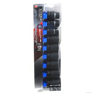 【用途】エアー駆動や電動のインパクトレンチなどの動力工具用ソケット。【機能・特徴】パワーツール(エアー・電動)に対応したソケットです。新型ソケットホルダーを採用しました。ワンタッチ操作で、簡単にソケットを取外せ、確実にソケットを取付けられます。六角ボルト(ミリ)に対応します。【仕様】●差込角:12.7mm(1/2インチ)。●サイズ内容:12・13・14・17・19・21・22・24・27mm。●ソケットホルダー付。●クリップ色:青。●仕上げ:黒仕上。【材質】●ソケット:クロームモリブデン鋼。●ソケットホルダークリップ:ポリアセタール。●レール:鉄。【注意事項・その他】作業中は安全のため保護メガネ、耳栓、安全帽、防じんマスク、安全靴をご使用ください。ボルト・ネジのサイズに合ったものを使用してください。使用前及び使用中に亀裂などの異常が認められたら使用しないでください。ソケットはボルト・ネジに対して斜め掛けや浅掛けをしないよう、奥まで完全に差し込んで使用してください。インパクトレンチを回転させながらナットにあてがわないでください。回転中のソケットに手を触れないでください。ソケットを装着した状態で空回しはしないでください。作業中にソケットが正しく取り付いていることを確認してください。本来の目的、用途以外での使用はしないでください。