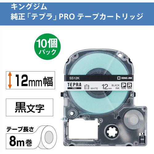 ■KING JIM 【純正】「テプラ」PROテープ 12mm エコパック(10個入り)/白ラベル/黒文字 長さ8m〔品番:SS12K10PN〕【8369198:0】[店頭受取不可]