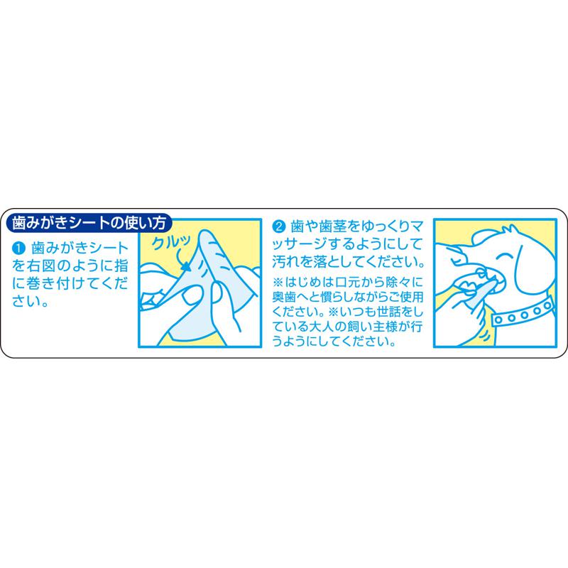 毎日使える!メッシュタイプの歯みがきシートメッシュシートが口内の汚れをしっかり拭き取り、歯垢の蓄積を抑え口臭を軽減します。指に巻きやすいサイズの2重折りシート。ペットにやさしい無香料、弱酸性。緑茶乾留エキス配合。【材質・素材】(素材)レーヨン、ポリエステル(成分)水、洗浄剤、BG、セチルピリジニウムクロリド、パラベン、グレープフルーツ種子エキス、緑茶乾留エキス、EDTA-2Na【原産国または製造地】日本【サイズ】シートサイズ:約150×200mm