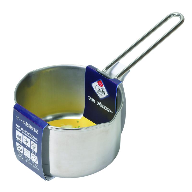 両口に注ぎ口があるので、スープなどを注ぎやすいです食器洗い乾燥機対応なのでお手入れも簡単です金属加工の町、新潟県燕三条産ガス火はもちろん、200VのIHクッキングヒーターやハロゲンヒーターなど熱源に対応製品サイズ(約):全長250×幅145×110mm製品重量(約):353g板厚:0.8容量:1.0L材質:材料の種類:本体:ステンレス鋼(クロム16%) 取っ手:ステンレス鋼(クロム16%)原産国:日本